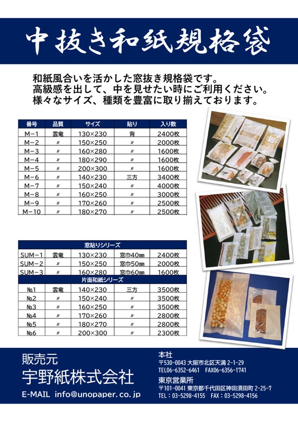 中抜き和紙規格袋の紹介